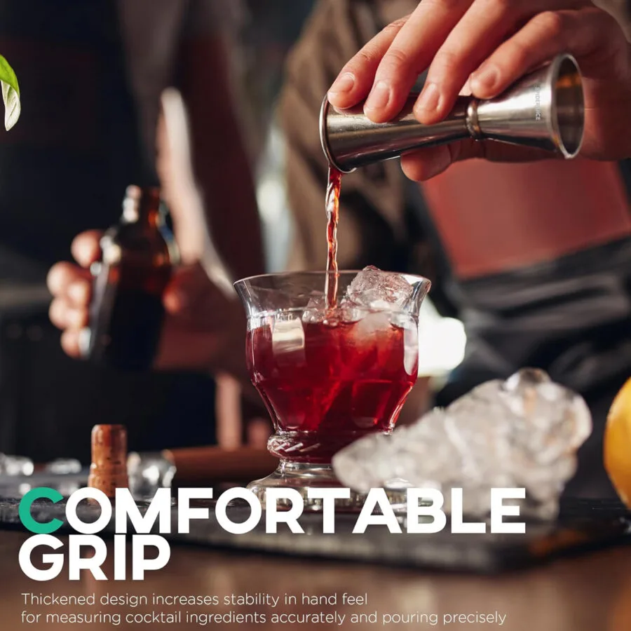 DURABLE SPIRIT MEASURER : Both ends of the Japanese cocktail jigger are spot welded together for seamless finish and strong bonding. Easy to clean, carry and store.